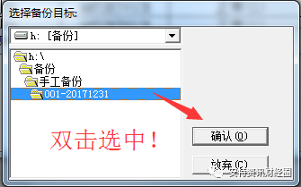 (3)等候一段時(shí)間 數(shù)據(jù)庫進(jìn)行后臺數(shù)據(jù)處理 在彈出選擇備份目標(biāo)窗口后引導(dǎo)至備份前新建的【XXX賬套20171231】文件夾,選擇時(shí)請務(wù)必雙擊該文件夾。