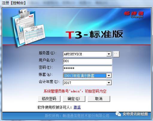 所以我們在重新登錄【系統(tǒng)管理】時(shí),登錄用戶用 賬套主管 身份登錄,登錄會(huì)計(jì)年度選擇2017年;