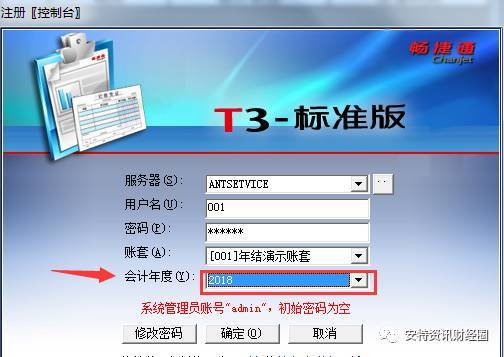 登錄T3,以新的年度2018年1月1日進(jìn)入軟件,總賬系統(tǒng)的對賬是在期初余額部分。