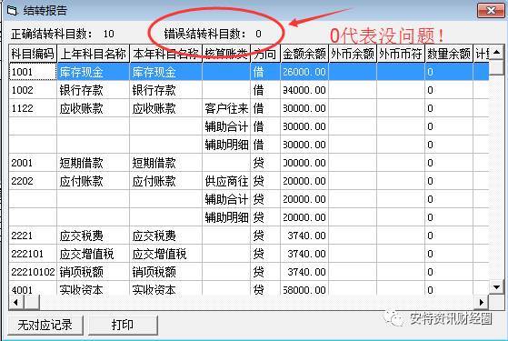 試算平衡、借貸數(shù)據(jù)與上年期末余額數(shù)相等,對賬無錯(cuò)即為正常結(jié)轉(zhuǎn)。