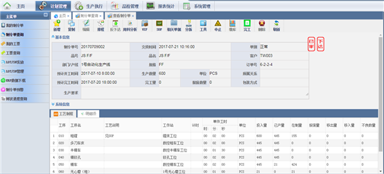 由于機(jī)械加工行業(yè)屬于離散型的生產(chǎn),客戶個性化需求多,產(chǎn)品品種日趨多樣性,市場需求變化快,預(yù)測難度增大,企業(yè)很難合理的安排生產(chǎn)。通過在系統(tǒng)中的制令單編排,制定好生產(chǎn)計劃安排,同時系統(tǒng)支持制令單的拆分和轉(zhuǎn)移單調(diào)整以應(yīng)對各種情況。