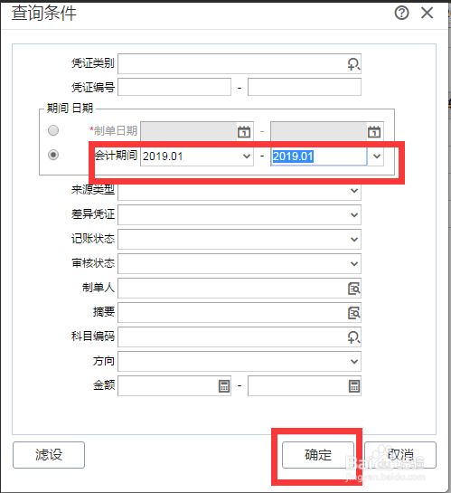 在軟件首頁左側菜單欄,選擇“總賬”,點擊“憑證管理”,進入“憑證管理”的“查詢條件”界面,選擇“會計期間”等查詢條件,點擊“確定”按鈕進行查詢。
